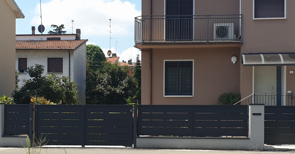 cancellata costruita con pannellatura in lamiera presso-piegata, prezincata e verniciata a polvere in fornocancello carraio ad ante in ferro a fascioni orizzontali in lamieracancello pedonale in ferro a fascioni orizzontali in lamieracancellata di recinzione in ferro a fascioni orizzontali in lamiera cancellata cieca con lamiere lisce e lancecancellata classica a disegno semplice ma personalizzabilecancellata con telaio in tubolare e fascioni in lamiera piegatacancellata a pannelli di piatti verticalirecinzione in grigliato elettroforgiatocancelli e cancellata in pannelli di lamiera cieca pantografata a laser con telaio in tubolare